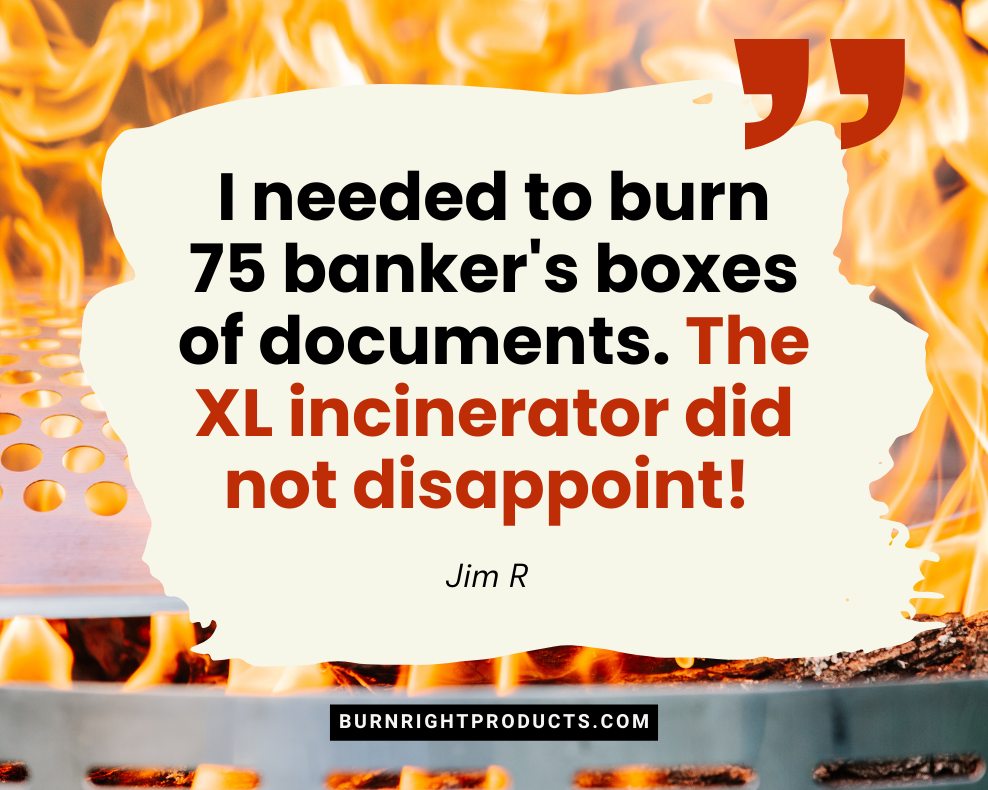Backyard incinerators are also used for securely destroying sensitive paperwork. Old financial records, client files, tax documents, and other personal information must be destroyed in a manner that precludes reconstruction.